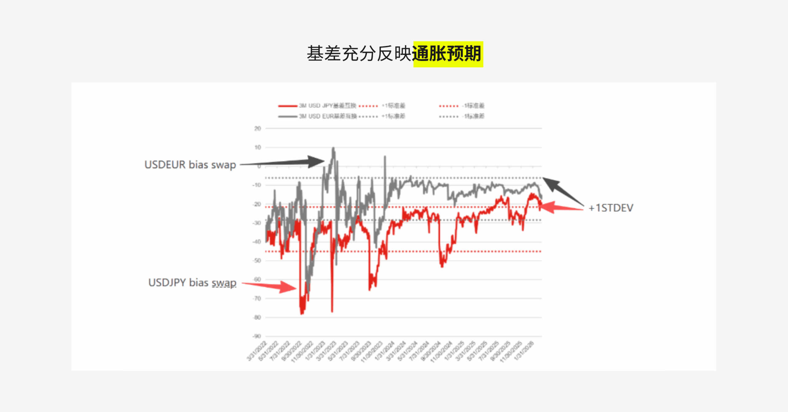 所幸短期内,市场对通胀已进行充分定价,因此即便 CPI 数据公布,也已在预期之内。USDJPY、EURUSD 等货币对的基差已突破 1 倍标准差区间,显示市场正强烈押注美元走强。