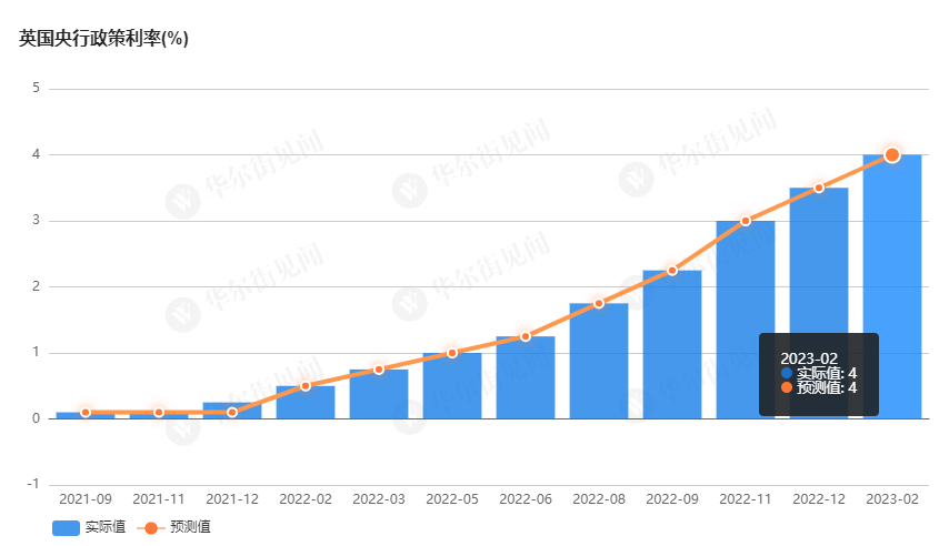 2 月 2 日 20:00,英国央行宣布加息 50 个基点,将基准利率从 3.5% 提高至 4%。这是英国央行自 2021 年 12 月以来连续第 10 次加息,累计加息幅度达到 390 个基点,为近 30 年来最大加息幅度。本次加息后,银行利率也来到了 2008 年 11 月以来的最高水平。