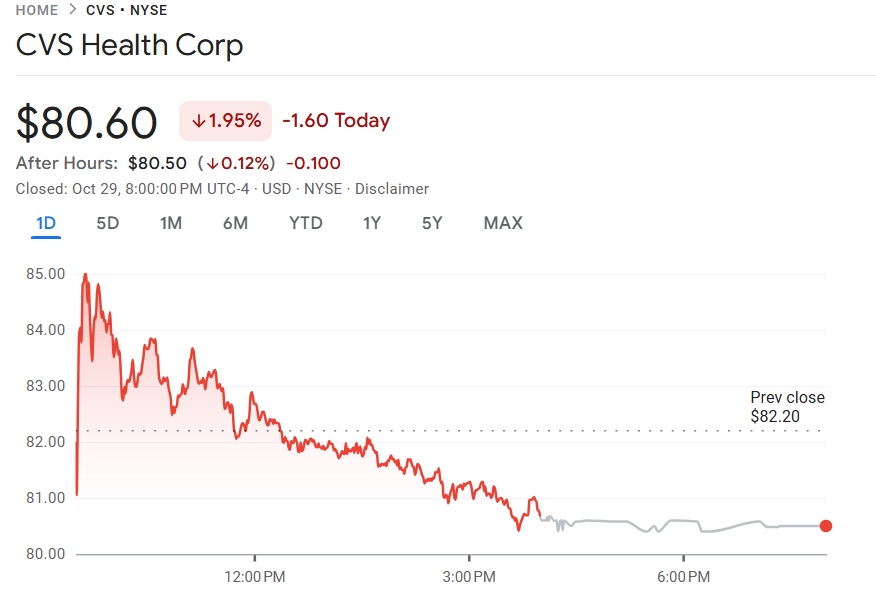 10 月 29 日至 30 日,CVS 药局(CVS)公布第三季度财报,营收同比增长 7.8% 至 1029 亿美元,优于市场预期的 988 亿美元;每股收益(EPS)为 1.60 美元,高于市场预期的 1.37 美元。