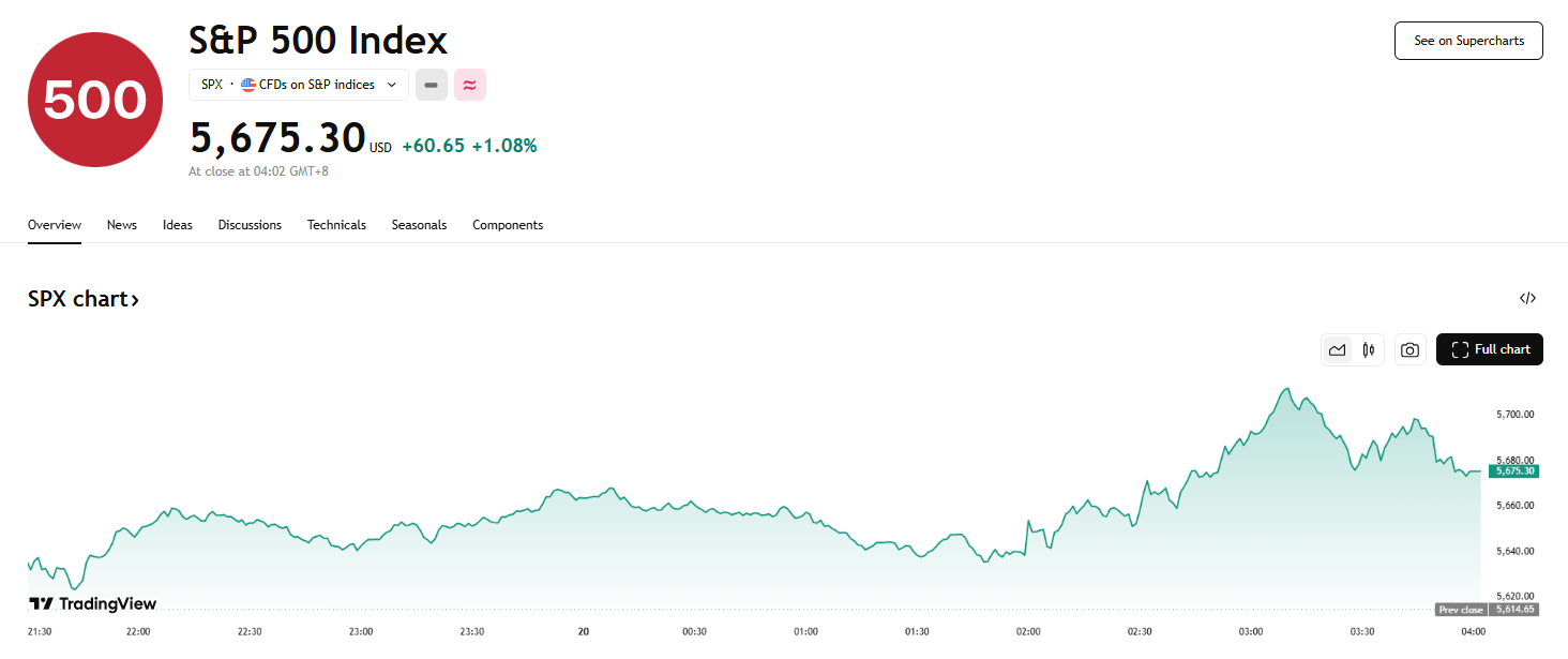 美国罕见股债齐升,标普 500 指数反弹超 1%