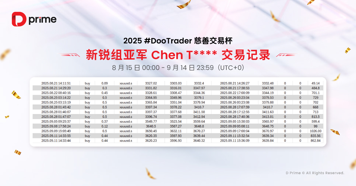 值得关注的是,2025 #DooTrader 慈善杯交易杯不仅是一场较量,更是爱心的传递。每当您在比赛中完成 1 手交易,D Prime 都将代表您捐出 0.1 美元,帮助改善贫困儿童的教育条件,让您的每一笔交易助力点亮更多孩子的未来。