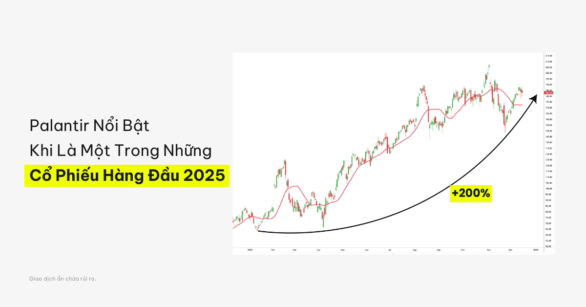 Có thể nói, Palantir là một trong những cổ phiếu được nhắc đến nhiều nhất trong năm. Với trọng tâm là các hợp đồng chính phủ, phần mềm doanh nghiệp và phân tích dữ liệu dựa trên AI, cổ phiếu này đã duy trì sự chú ý ngay cả trong các giai đoạn nhiều mã công nghệ điều chỉnh trên diện rộng. Sức mạnh của PLTR cho thấy thị trường ngày càng ưu ái mô hình doanh thu định kỳ và các ứng dụng có giá trị sử dụng rõ ràng, khi nhà đầu tư trở nên chọn lọc hơn.